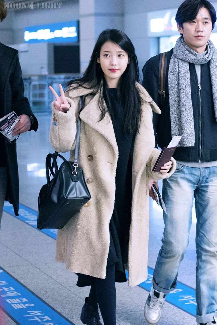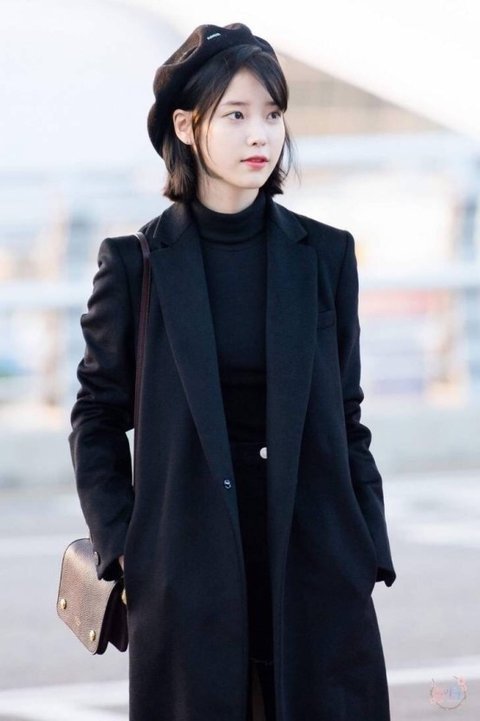 아이유의 올블랙 스타일인줄 알았는데 안에 풀색 니트가 있다.