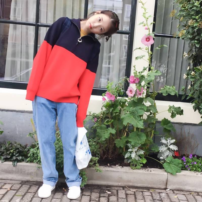 여기서도 가방과 니트가 약간의 깔맞춤