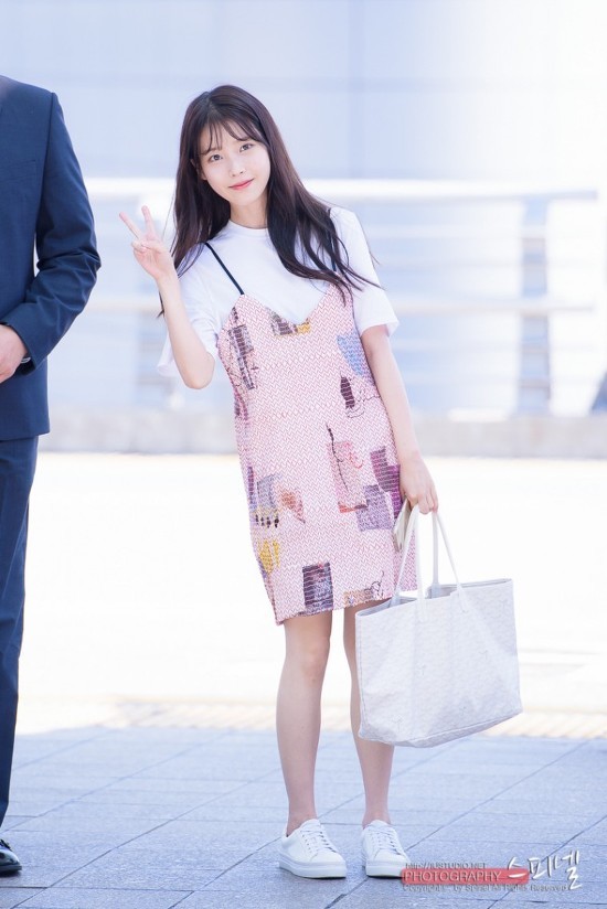 아이유는 이렇게 소녀소녀한 원피스도 즐겨입는다.